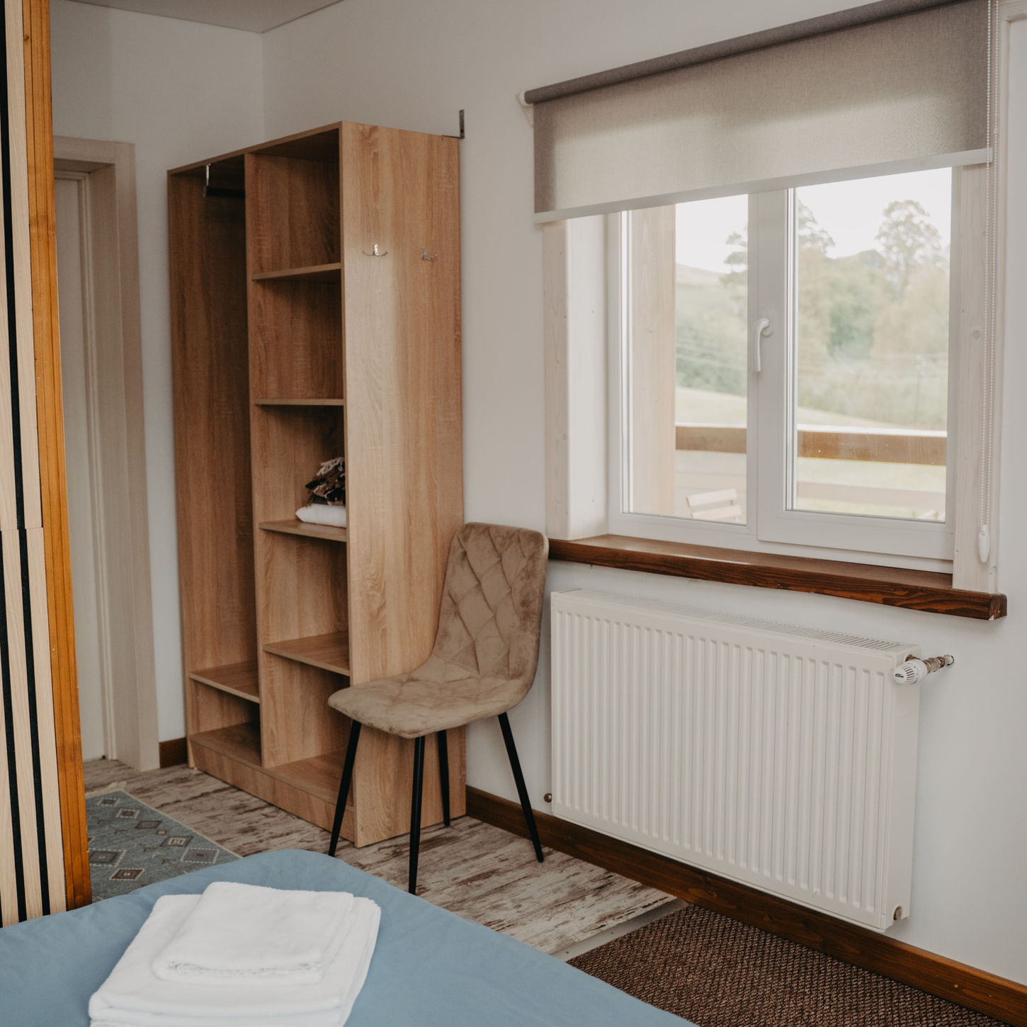 Всі наші 9 номерів однакові по розміру, всі розраховані на 2-ох осіб, у кожному номері є туалет, рушники, засоби гігієни, шафа для одягу, та вихід на терасу, вартість проживання 1500 грн/доба.